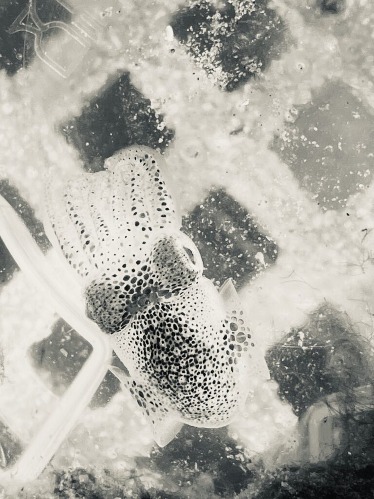 Today i got rewarded for that memorable moment. Kids in the Vlieland marina were catching little crabs and stuff from jetties and to my surprise they caught two really tiny squidies (max 3cm) with there little net. I never knew they grew up here right under my feet hull.