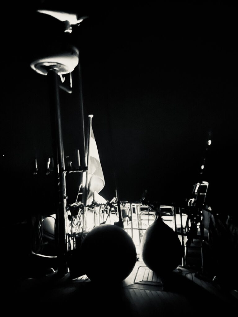 Crossing shipping lanes can be tricky. Especially when you have to cross a double one in the middle of the night. So while Leonie and I enjoyed our 3 hour sleep Dirk was playing with big carriers and the ‘Mein Schiff 3’ at the Weser lanes. I’m not sure how often he changed course to play it save, but he got us through in one piece.