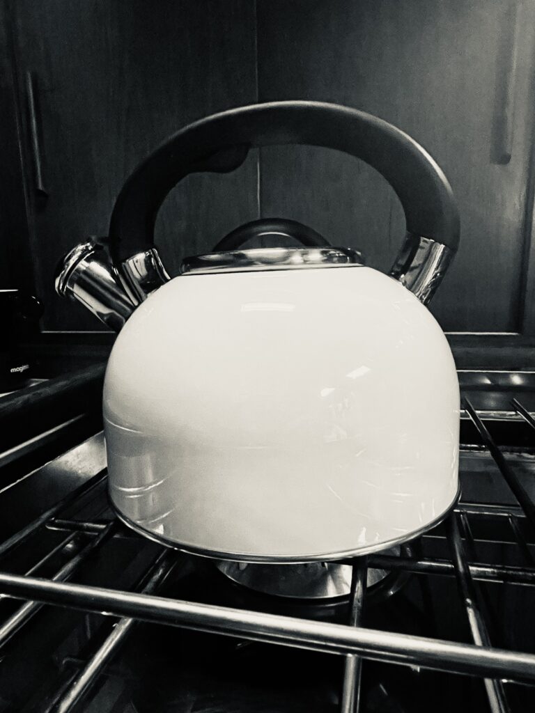 Have a look at our new kettle. Except for the handle it is hot as hell. And that’s the main reason we bought this sexy baby. Our old kettle was way to hot to handle the handle. Uhm, what? Forget it, we have something hot on board. That’s all that matters.