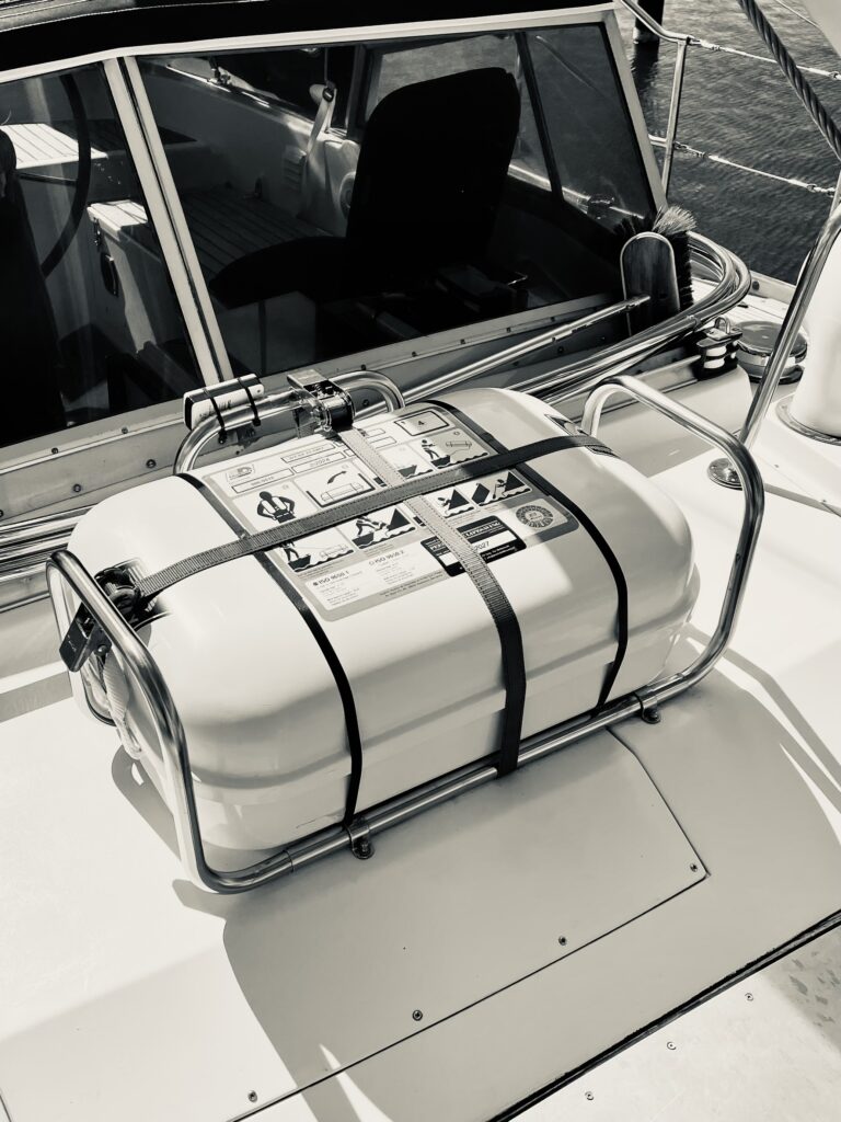 We said goodbye to our 16 year old liferaft and bought a brand new one. Big enough for four persons, so it should be fine for me and Leonie. Not big enough for the clamp but i made some adjustments and now it still doesn’t fit the way I would like to. Classic craftmanship ;). I’m going to think about it tonight and see what comes tomorrow.