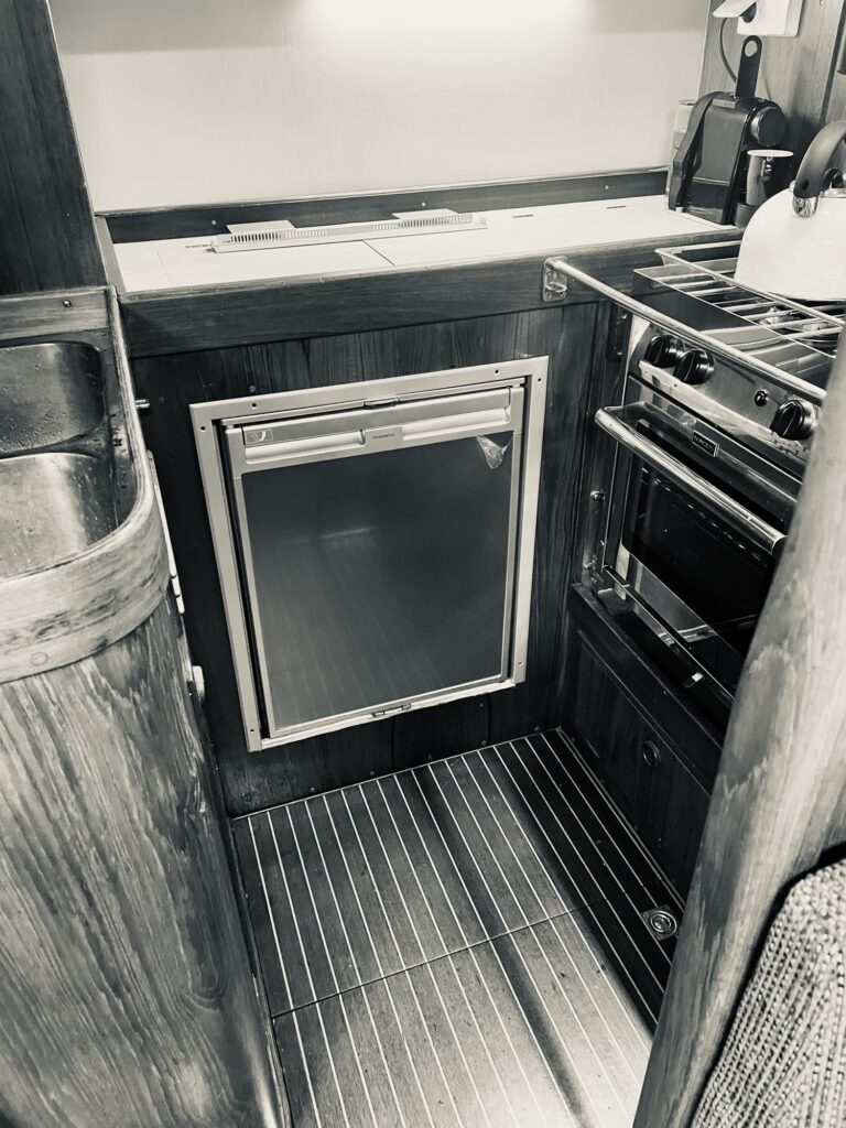 Actually the old fridge was still ok but I just didn’t trusted it anymore. And we hated piling up the food, because you always need stuff from underneath. A nice extra is the little freeze compartment and probably this Dometic CRX80 (see picture) is quite a bit more energy efficient. We’ll see. Today i’m going to fasten the unit and fix the DC 12v connection. I’ll let you know what still went wrong last minute.