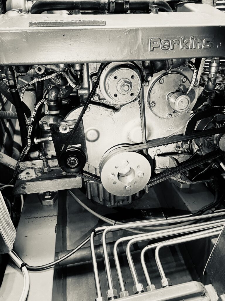 Still lots of work to do before we set course to Denmark or may be Norway or Sweden, but we’re getting there … some day. Last year we had the little fueltank cleaned (we’re not using the big one anymore), changed all the filters twice, flushed the engine with some special stuff to make things run even better. Changed the oil again after that. We changed the complete network of diesel hoses in the engine room, completed them with extra taps to be sure we can shut it all seperately off, including the Webasto and Dickinson heater. The two extra vent/bleed valves are great to get air out of the system if necessary.The engine strings are still ok. We’ve got everything in reserve. Tomorrow i’m going to replace the Separfilters again to be sure everything is still clean. The tank is full. Our Perkins (1977 – 4cil – 75HP) is running perfect and smoother than ever before. With only 7800 working hours the engine will probably keep running for at least another 47 years. Look at this beauty 🙂
