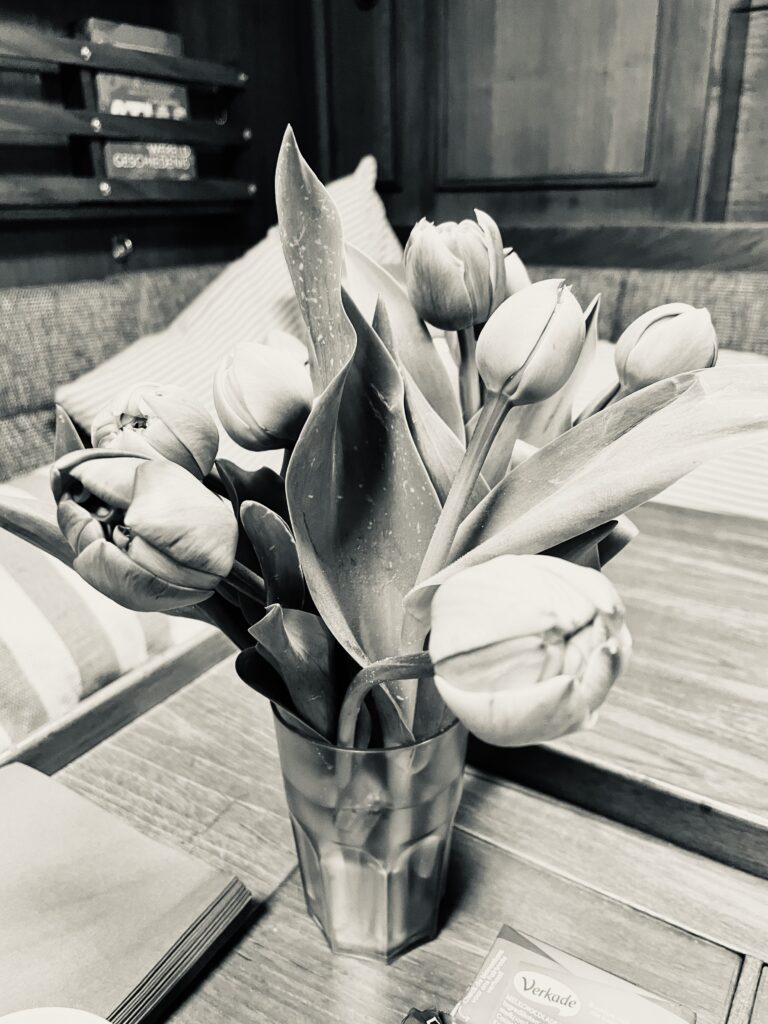 Is it strange to have a vase with beautiful tulips on your table on board? Probably that’s a yes if you’re on the move. But we are still busy getting our beloved lady ready for the upcoming season and I think it’s ok if you are docked.