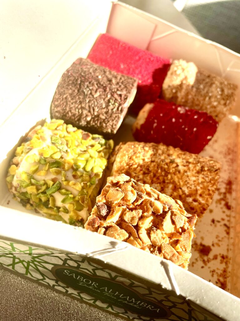 Sweeeeeeeeeeeeeeet it is. We got some of these confections based on a gel of starch and sugar from a little shop downtown in Granada. This little box full of sweetness is probably enough for weeks.