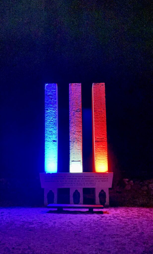 Monument to the civil war fighters interned in the Barcarès camp. That’s the short version. We didn’t even noticed it when we passed it at daylight. But it surely made an impression at the evening.